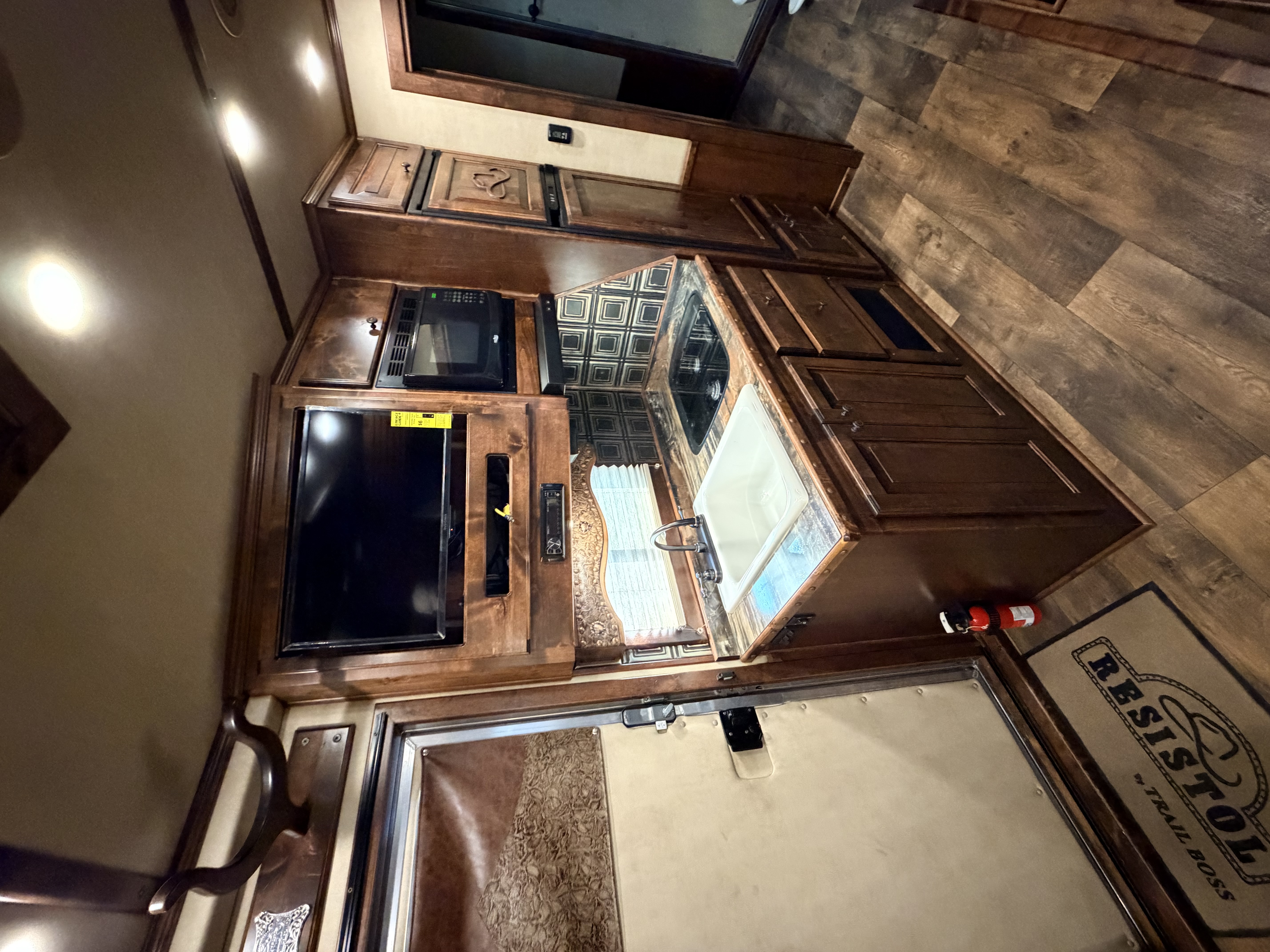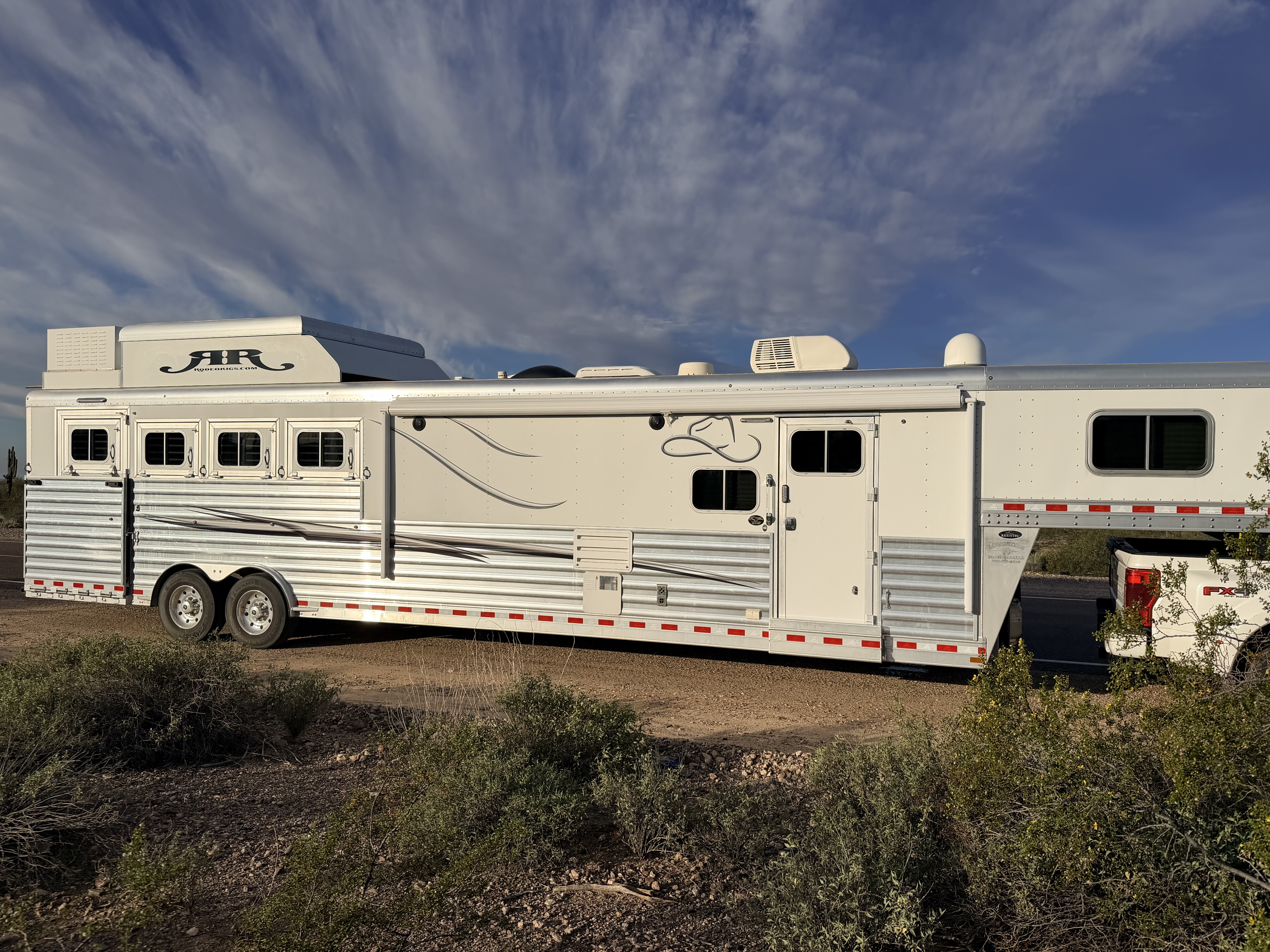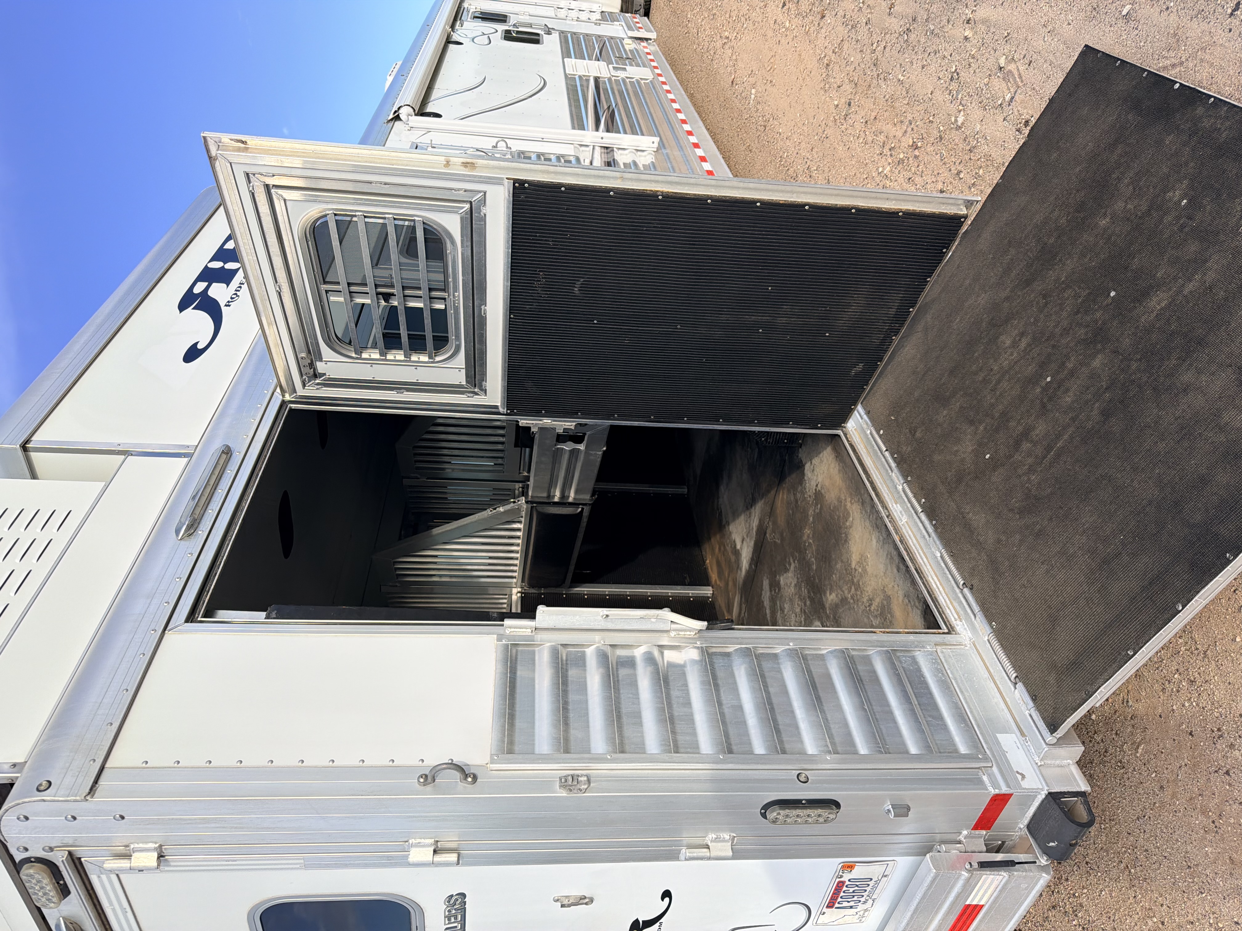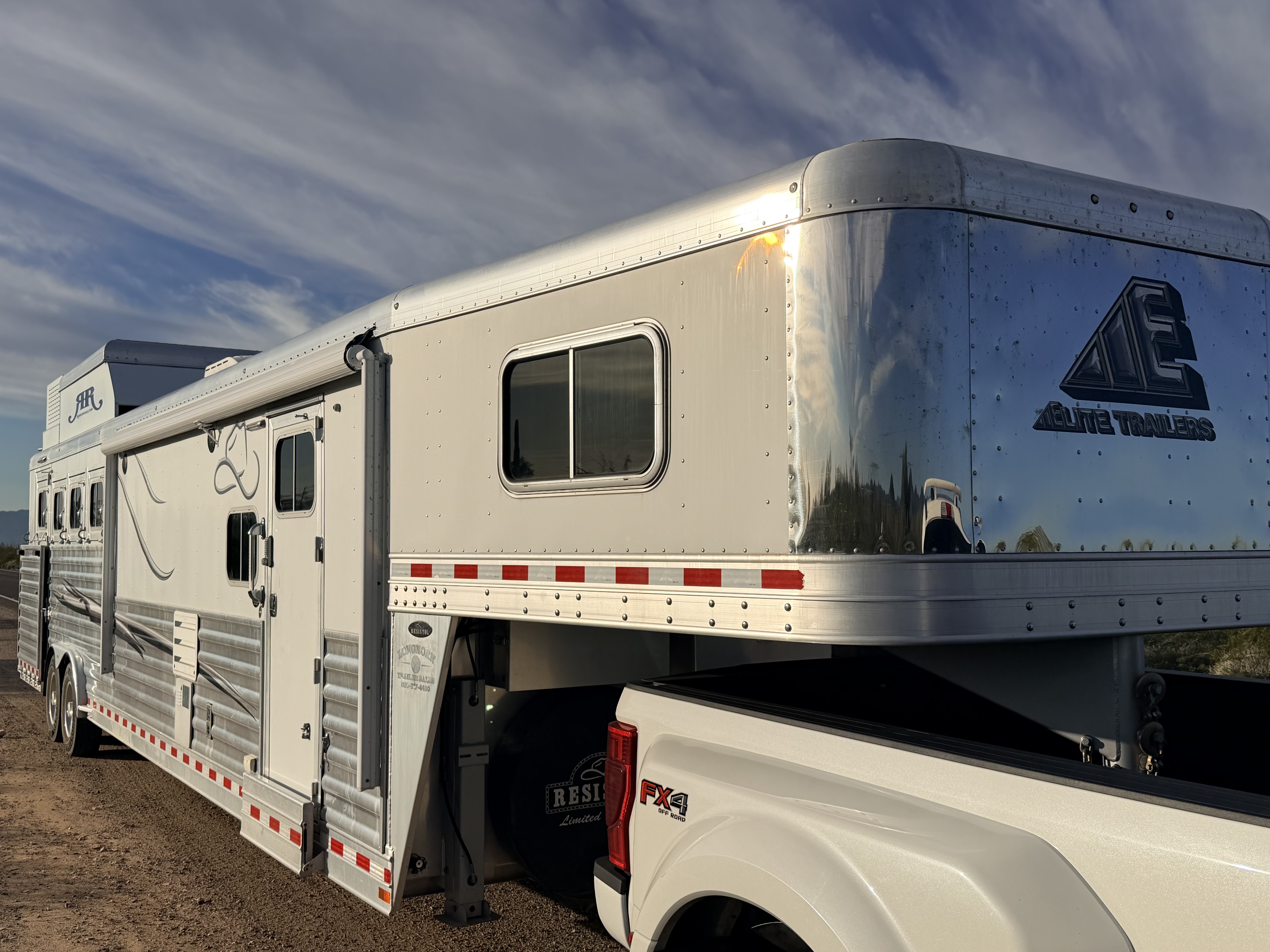 This 2020 Elite side load features a dinette-sleeper in the 6' slide out, and a sofa-sleeper on the riser wall. The full kitchen has a recessed cook-top, large sink, microwave, large refrigerator, and lots of storage. The bathroom has the radius shower, double hanging closet, sink with vanity and mirror, and a walk-through door into the horse area. The horse area has air flow dividers, mangers with under manger storage, and a side load ramp. The full rear tack has a 4-tier saddle rack, blanket bars, bridle hooks and brush boxes. Additional features include a hay pod, awning and hydraulic jack. This trailer has a floor length of 34'.