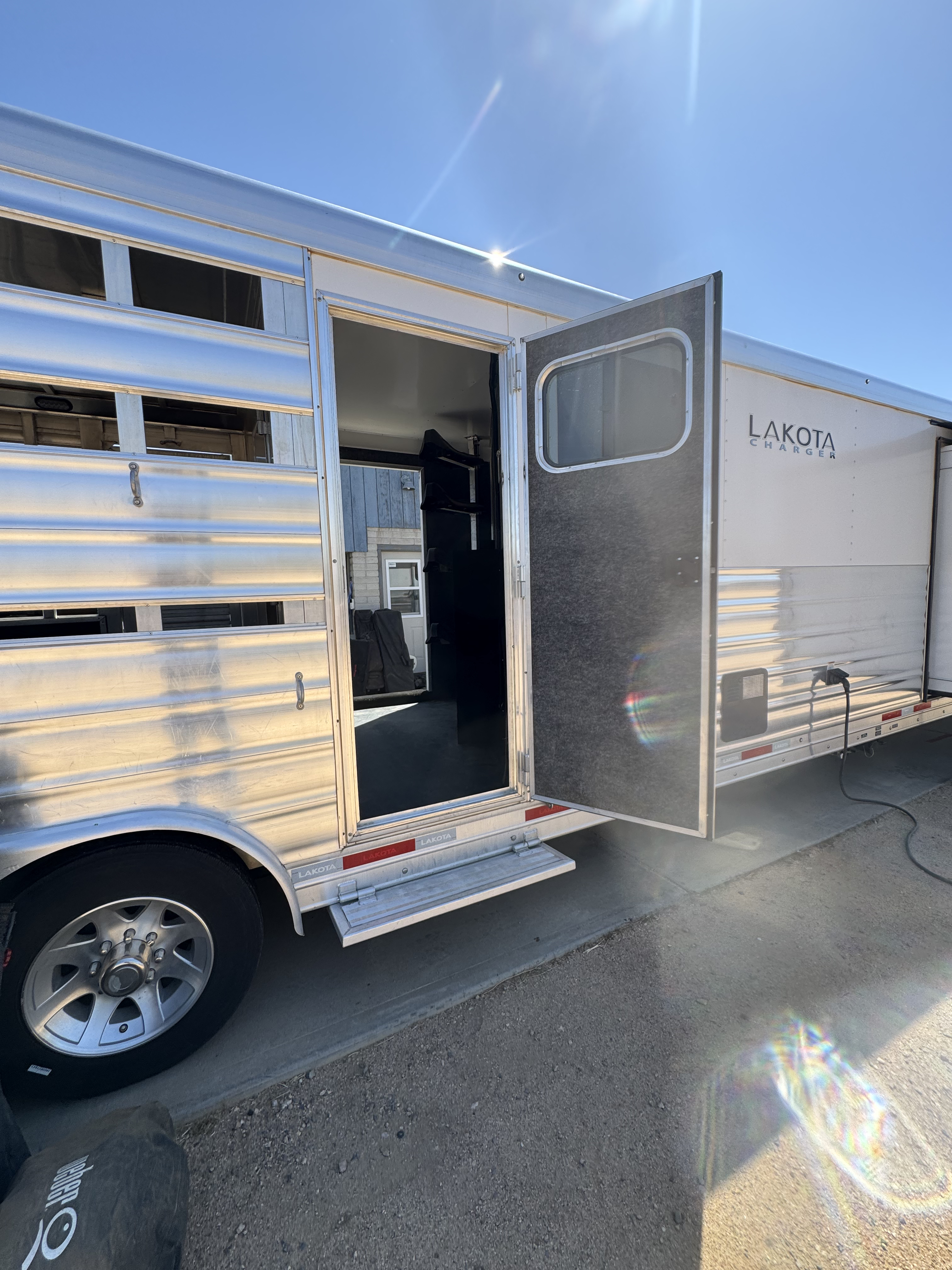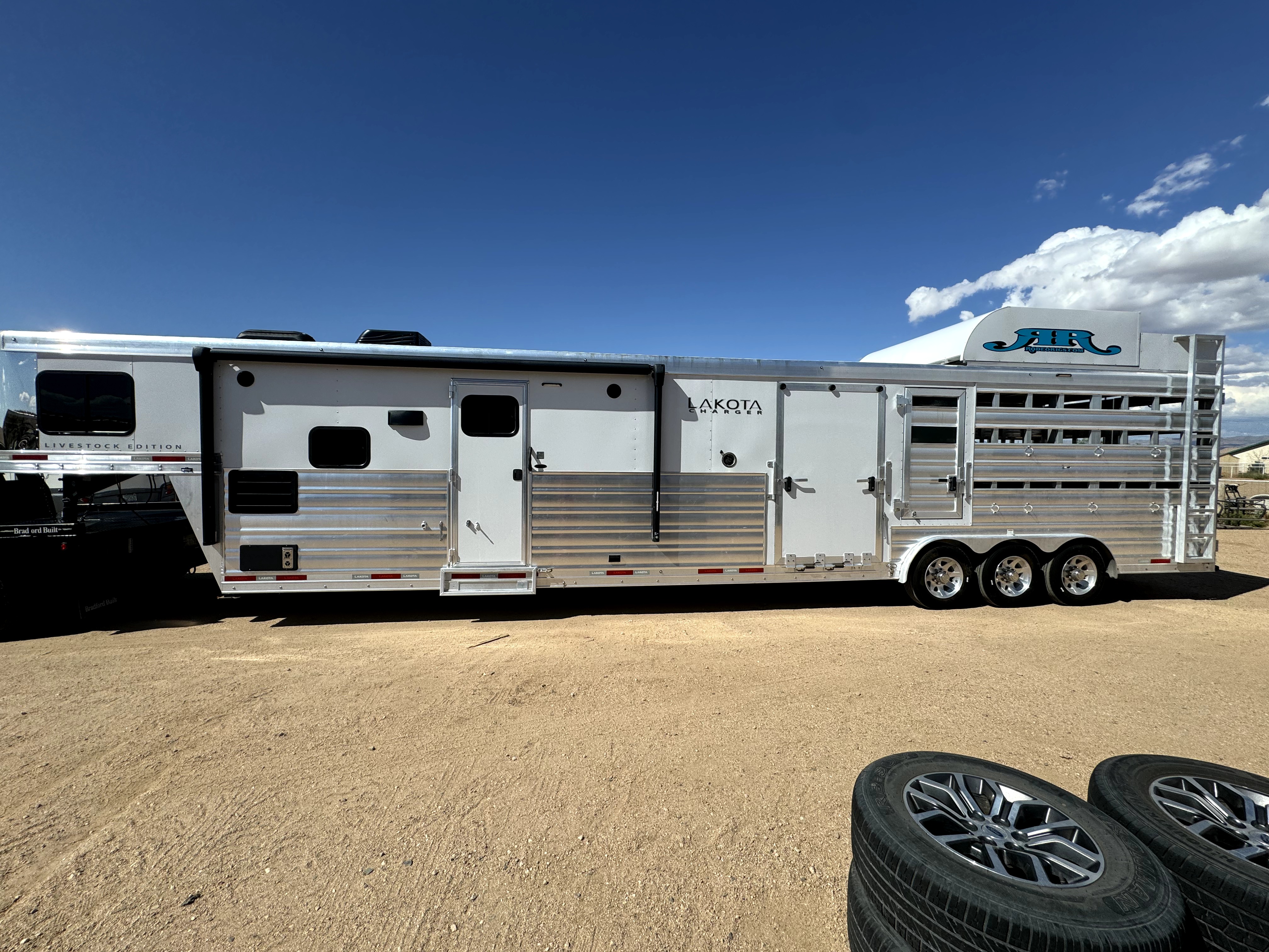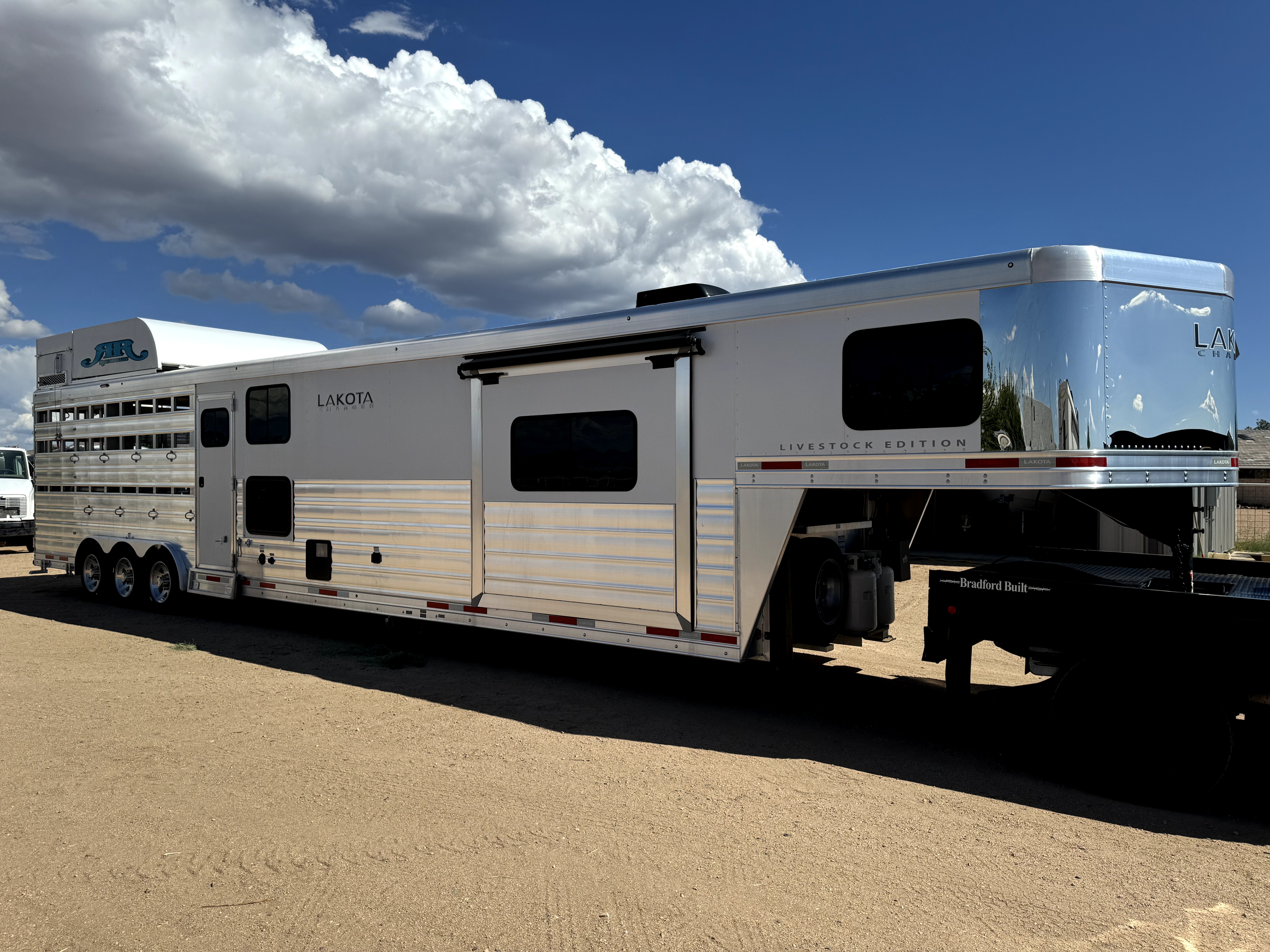 Experience comfort, convenience, and power on the road with this impressive 2021 Lakota 45' Stock Back Living Quarters Trailer, packed with premium features for both work and relaxation. The spacious 15' living quarters offers a welcoming retreat, complete with bunkbeds and a slide-out sofa that expands your living space. Enjoy home-style cooking in the full kitchen, featuring a sink, cooktop, and fridge, while the onboard generator keeps you powered up wherever your travels take you. The roomy mid-tack provides abundant storage and easy access with a convenient sideload ramp, leading to the durable 14' stock area built for versatility and livestock comfort. A hay pod adds even more practicality for long hauls. Stay entertained with a TV, DVD/CD player, AM/FM system, and both interior and exterior speakers, all supported by ducted air to keep the entire space cool and comfortable. This Lakota blends rugged capability with residential luxury—perfect for anyone who demands reliability, space, and style on the road.