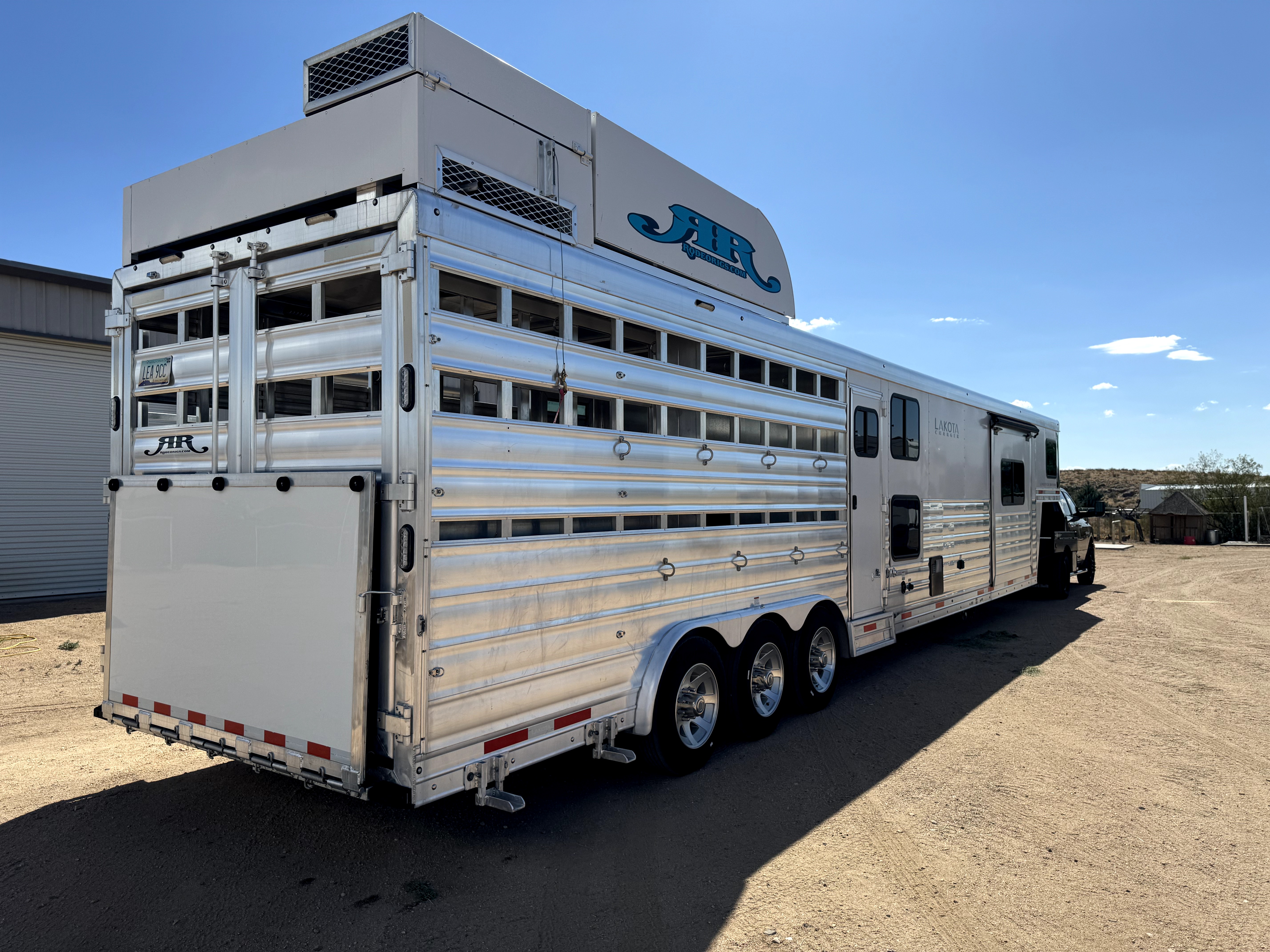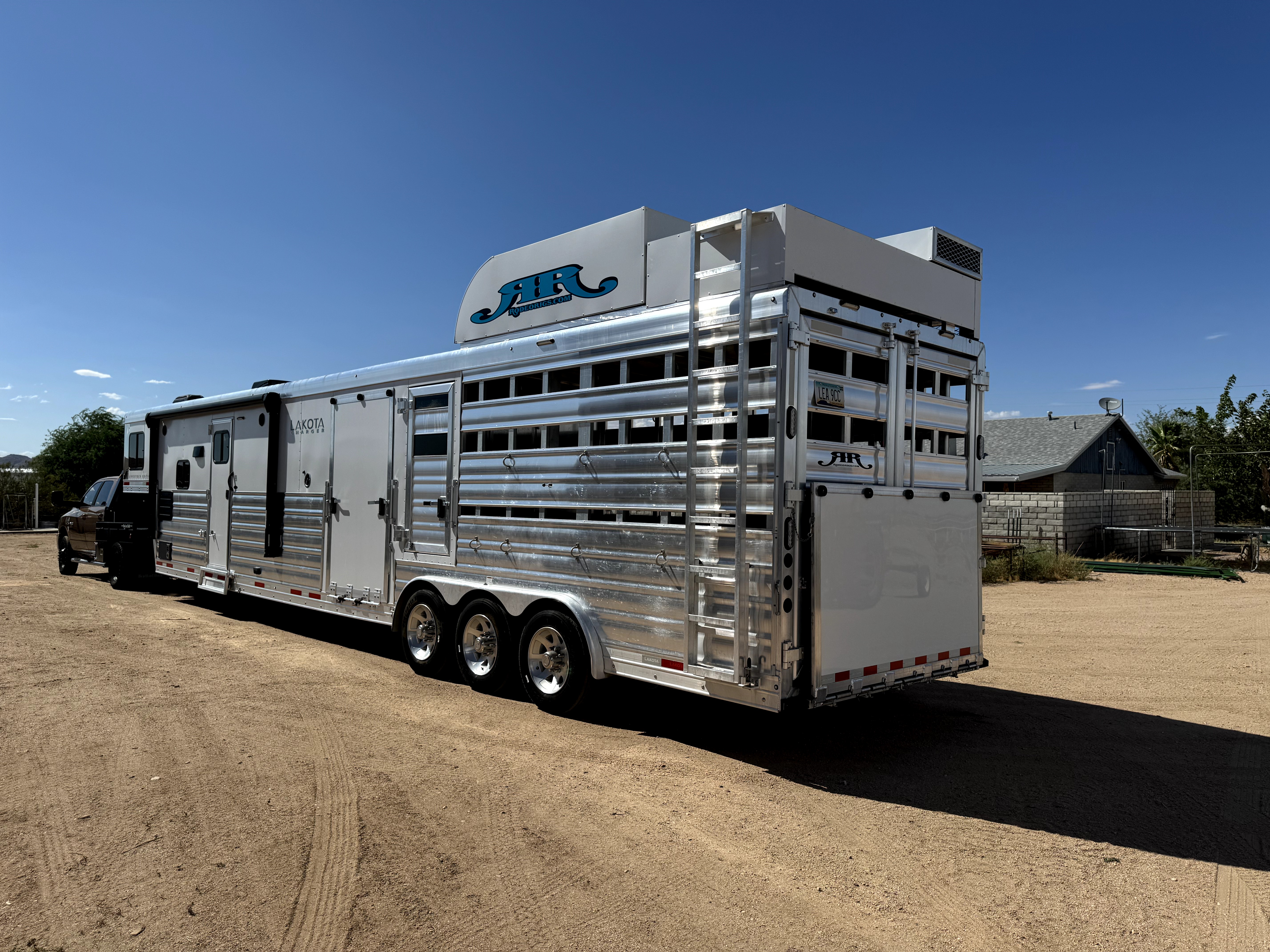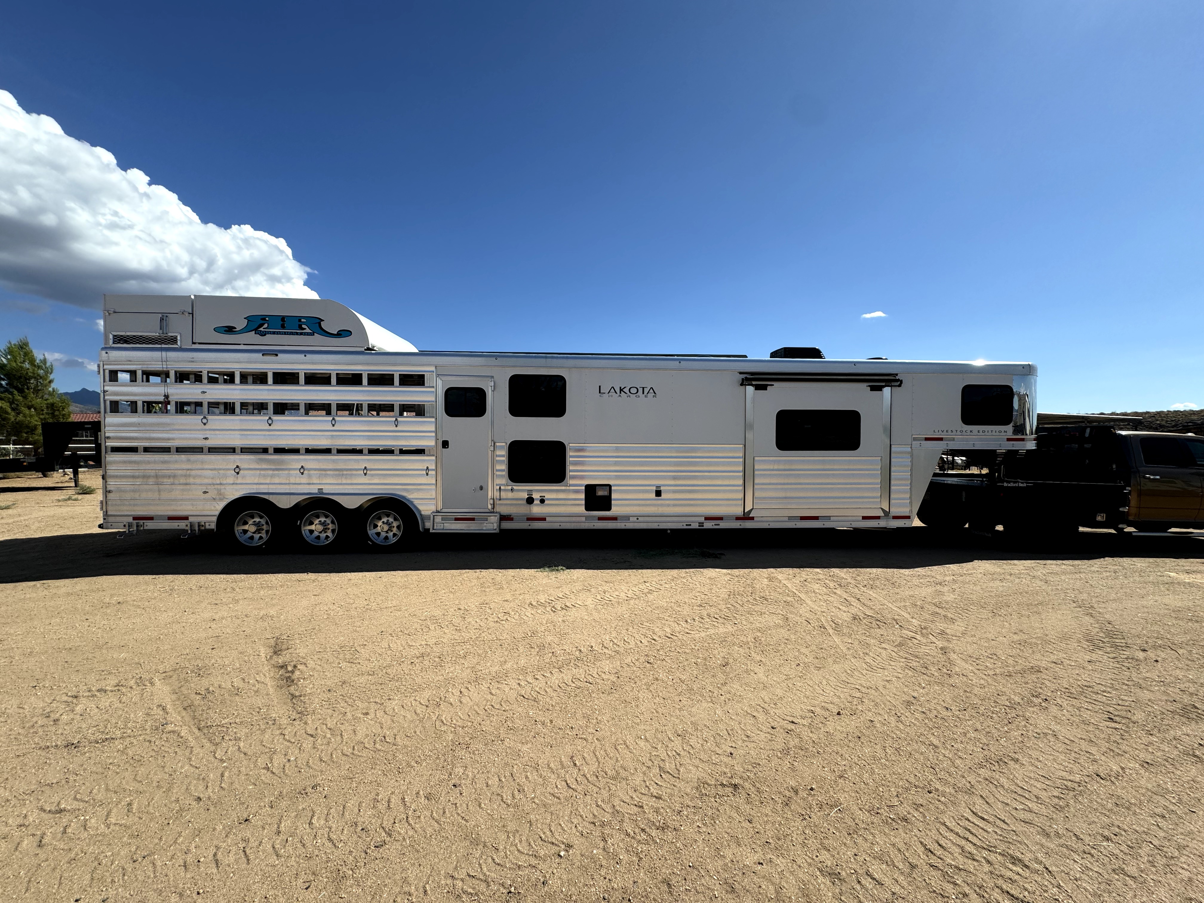 Experience comfort, convenience, and power on the road with this impressive 2021 Lakota 45' Stock Back Living Quarters Trailer, packed with premium features for both work and relaxation. The spacious 15' living quarters offers a welcoming retreat, complete with bunkbeds and a slide-out sofa that expands your living space. Enjoy home-style cooking in the full kitchen, featuring a sink, cooktop, and fridge, while the onboard generator keeps you powered up wherever your travels take you. The roomy mid-tack provides abundant storage and easy access with a convenient sideload ramp, leading to the durable 14' stock area built for versatility and livestock comfort. A hay pod adds even more practicality for long hauls. Stay entertained with a TV, DVD/CD player, AM/FM system, and both interior and exterior speakers, all supported by ducted air to keep the entire space cool and comfortable. This Lakota blends rugged capability with residential luxury—perfect for anyone who demands reliability, space, and style on the road.