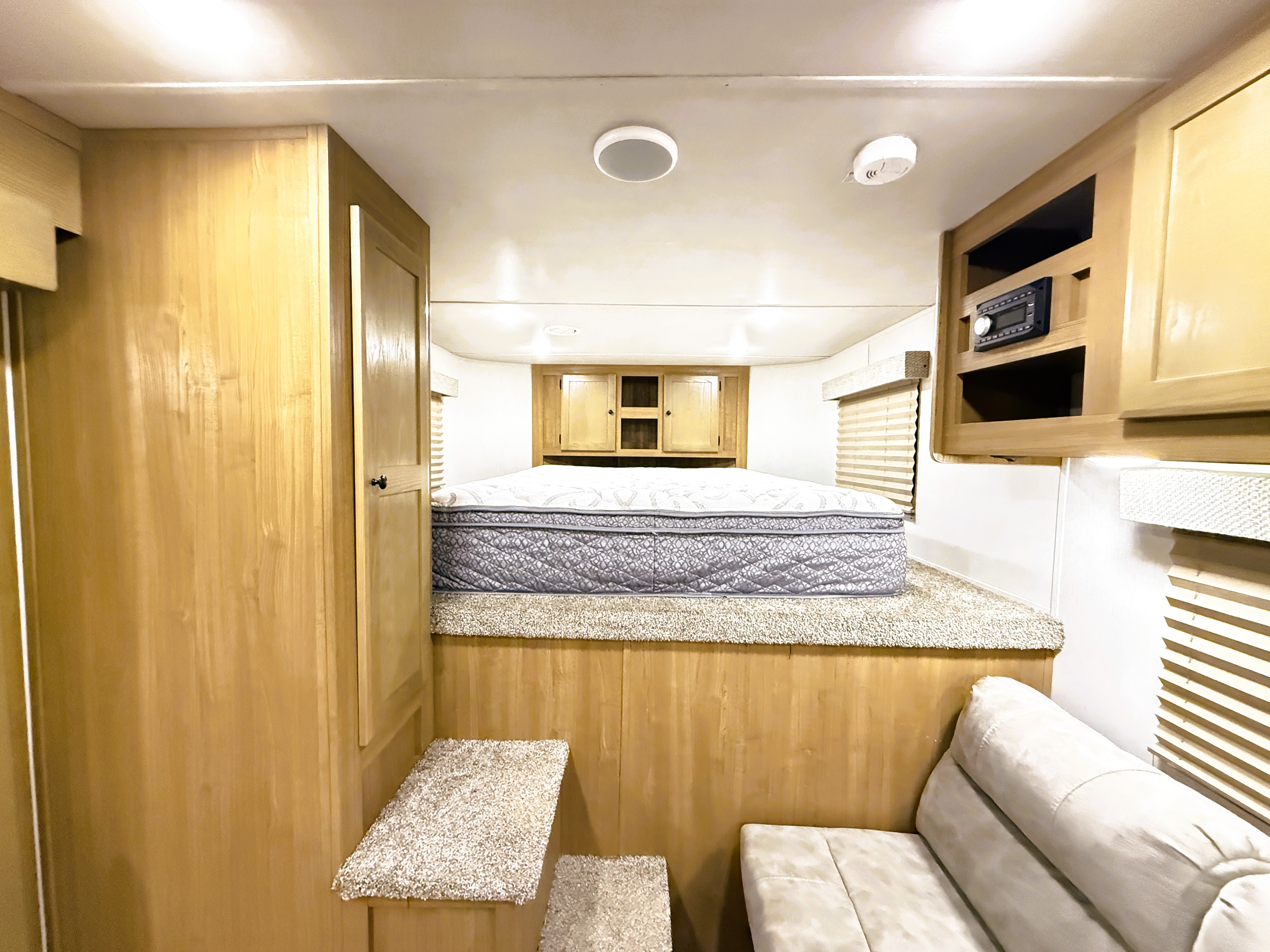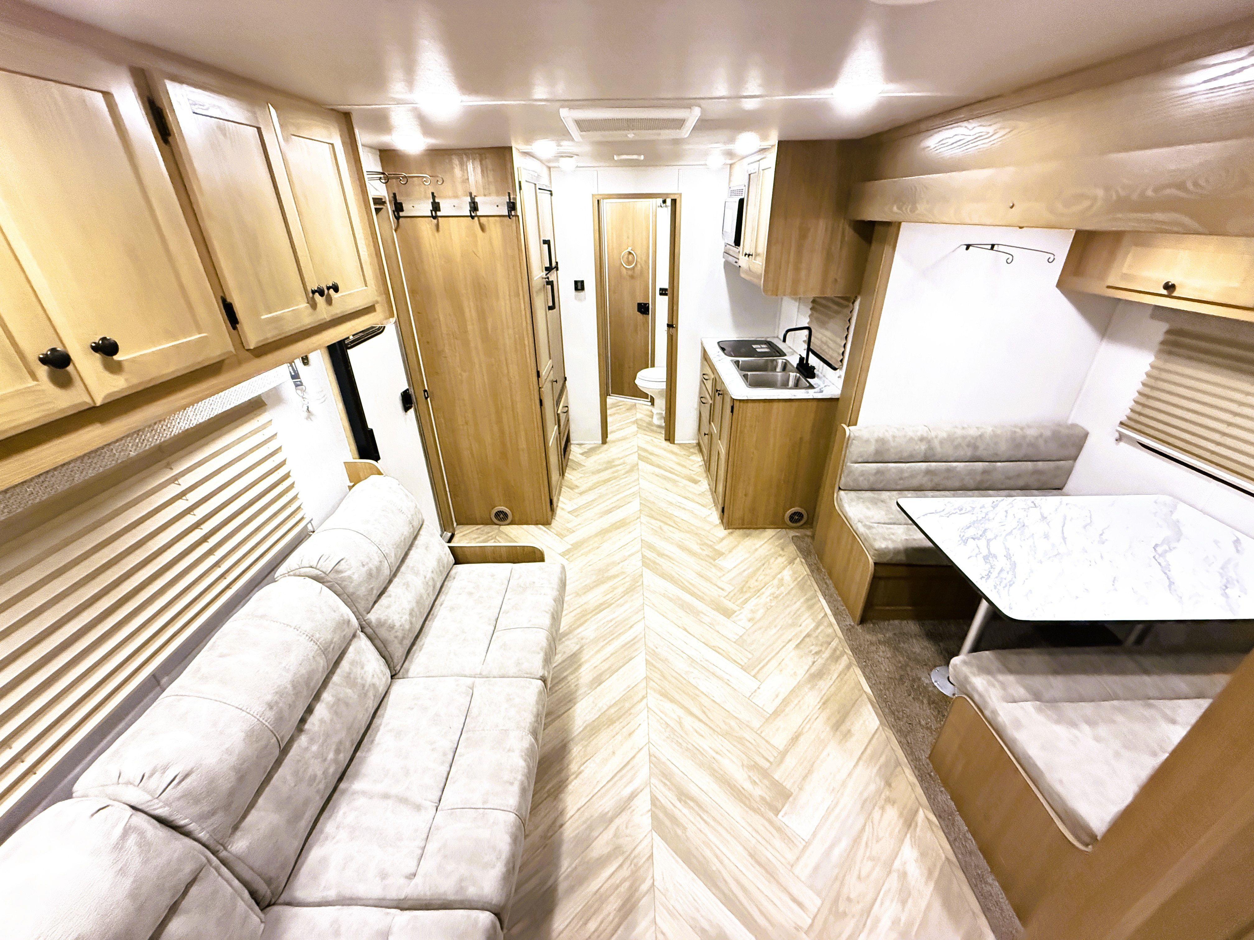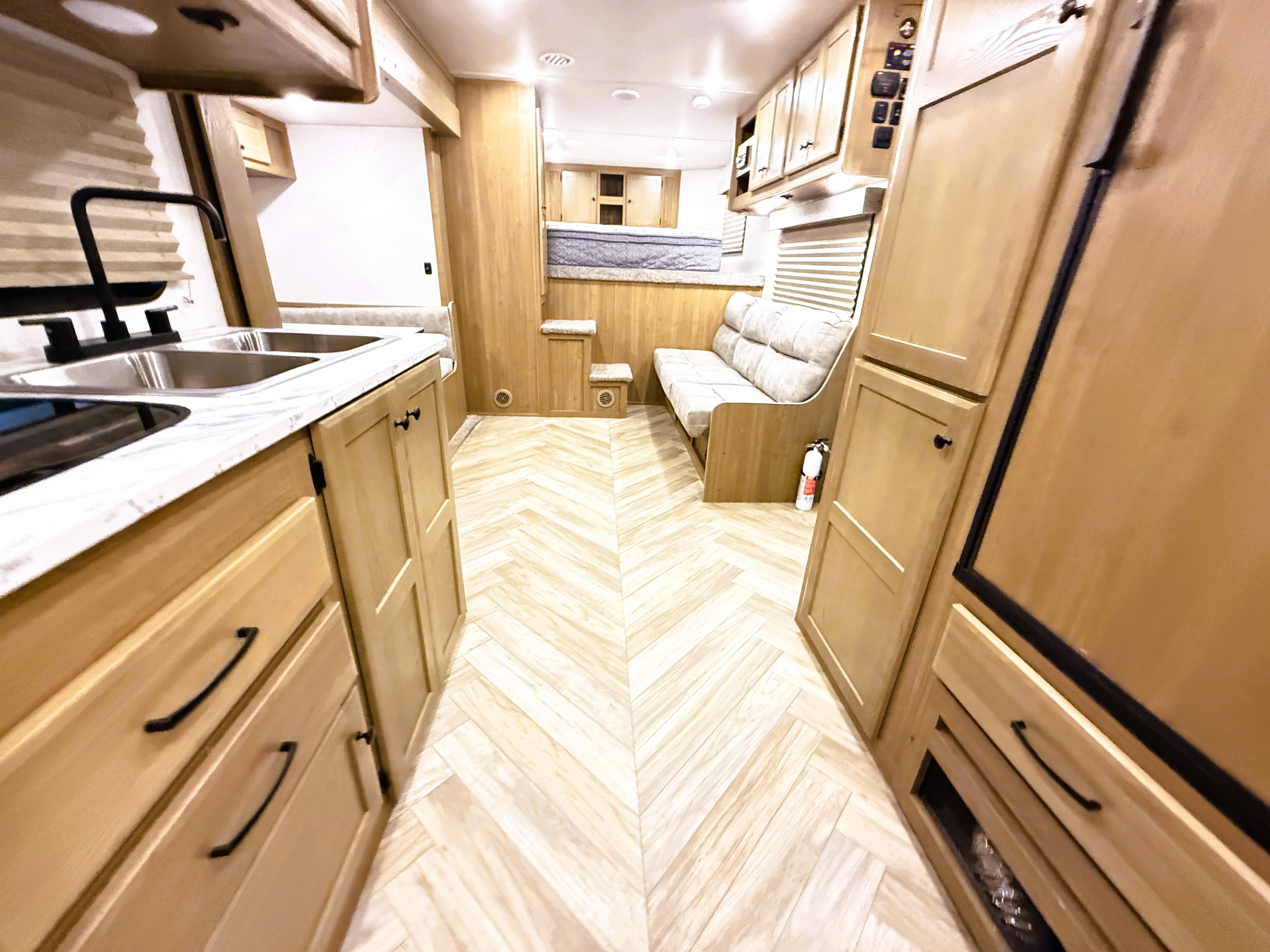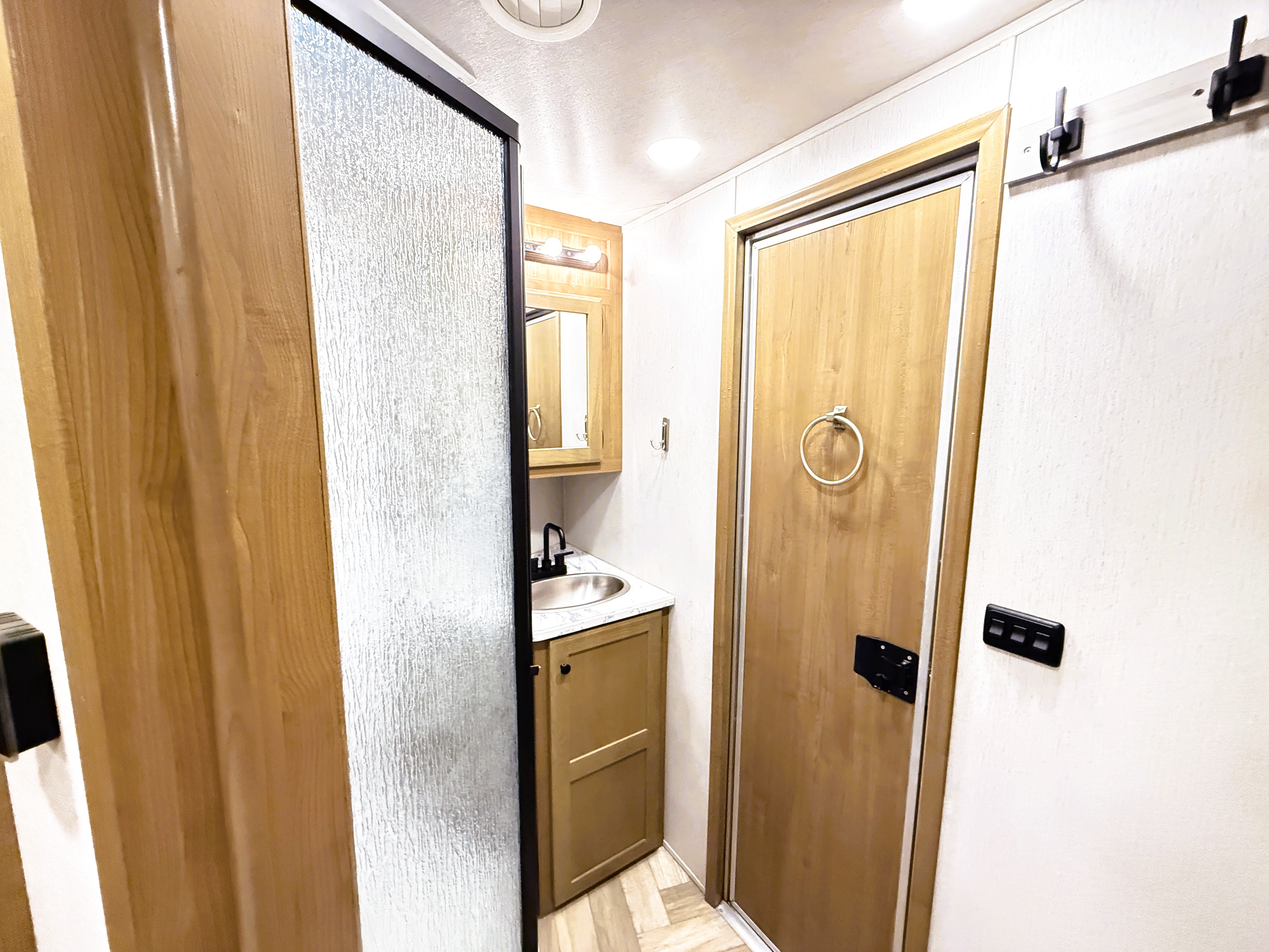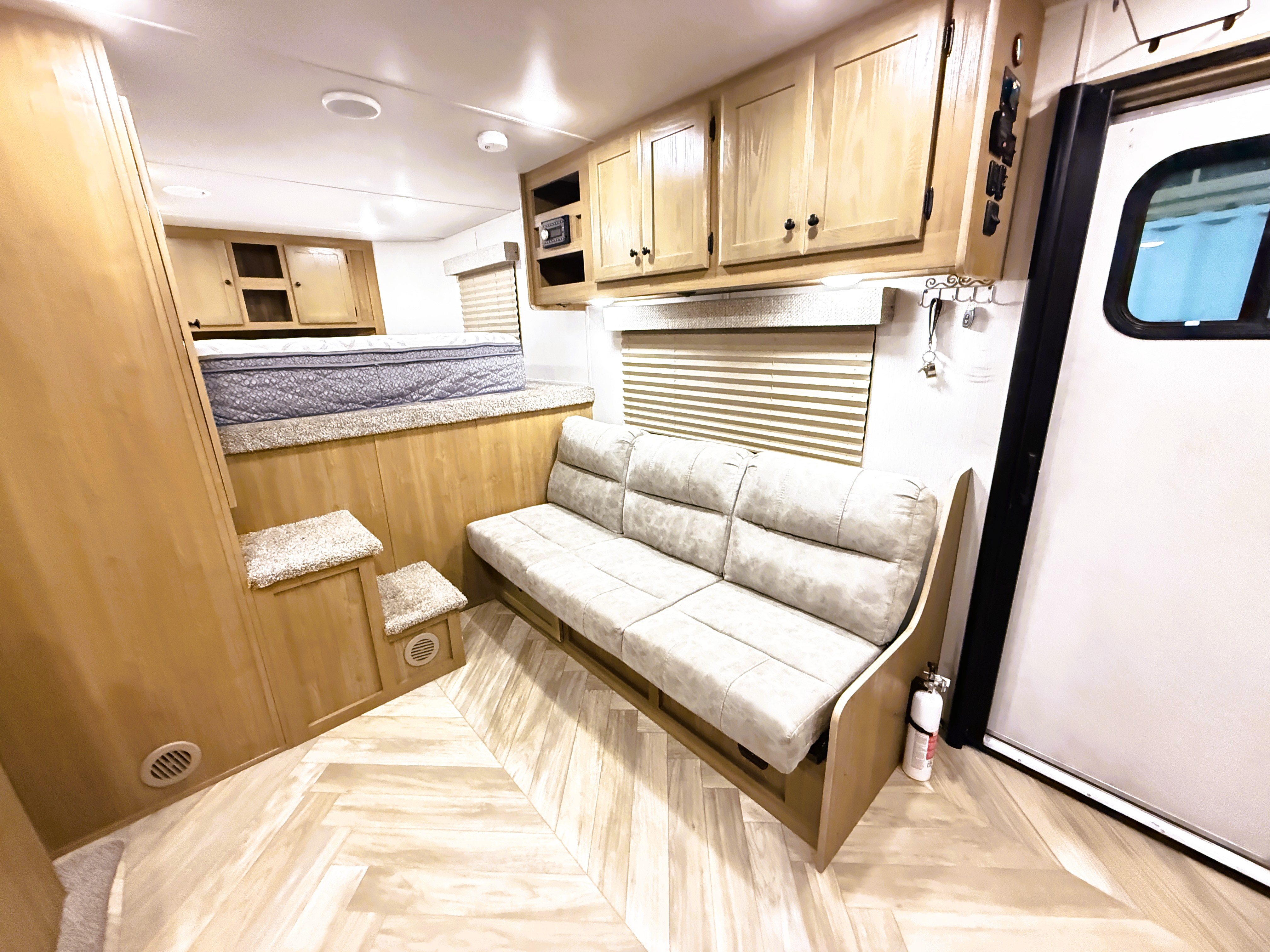 This 2024 Lakota 4-horse side-load features the highly desirable full rear tack room that includes a 4-tier saddle rack, brush boxes, blanket bars and lots of bridle hooks. The 15' living quarters features a queen-sized bed in the nose along with hanging closets. The living area has a sofa-sleeper, and a dinette-sleeper in the 6' slide out. The full kitchen has a large refrigerator, recessed cook top, double-sided sink, microwave and lots of storage. The private bathroom has a radius shower, toilet, sink with vanity and mirror, storage and a walk-through door into the horse area. The horse compartment features a stud stall in the first divider, drop down windows, mangers with under manger storage and a side load ramp. Additional features include a hay pod with ladder, generator, dual hydraulic jacks, and an awning.