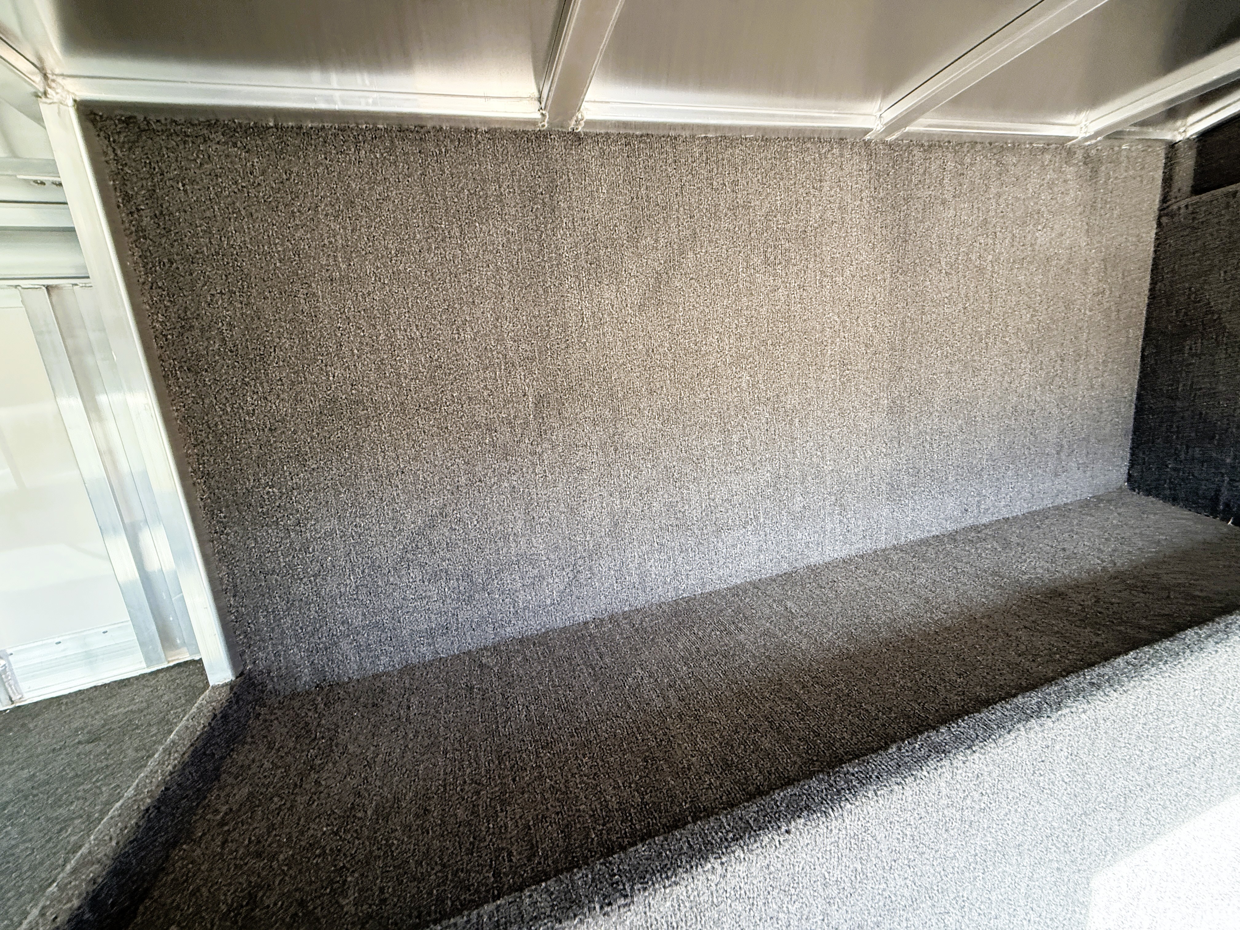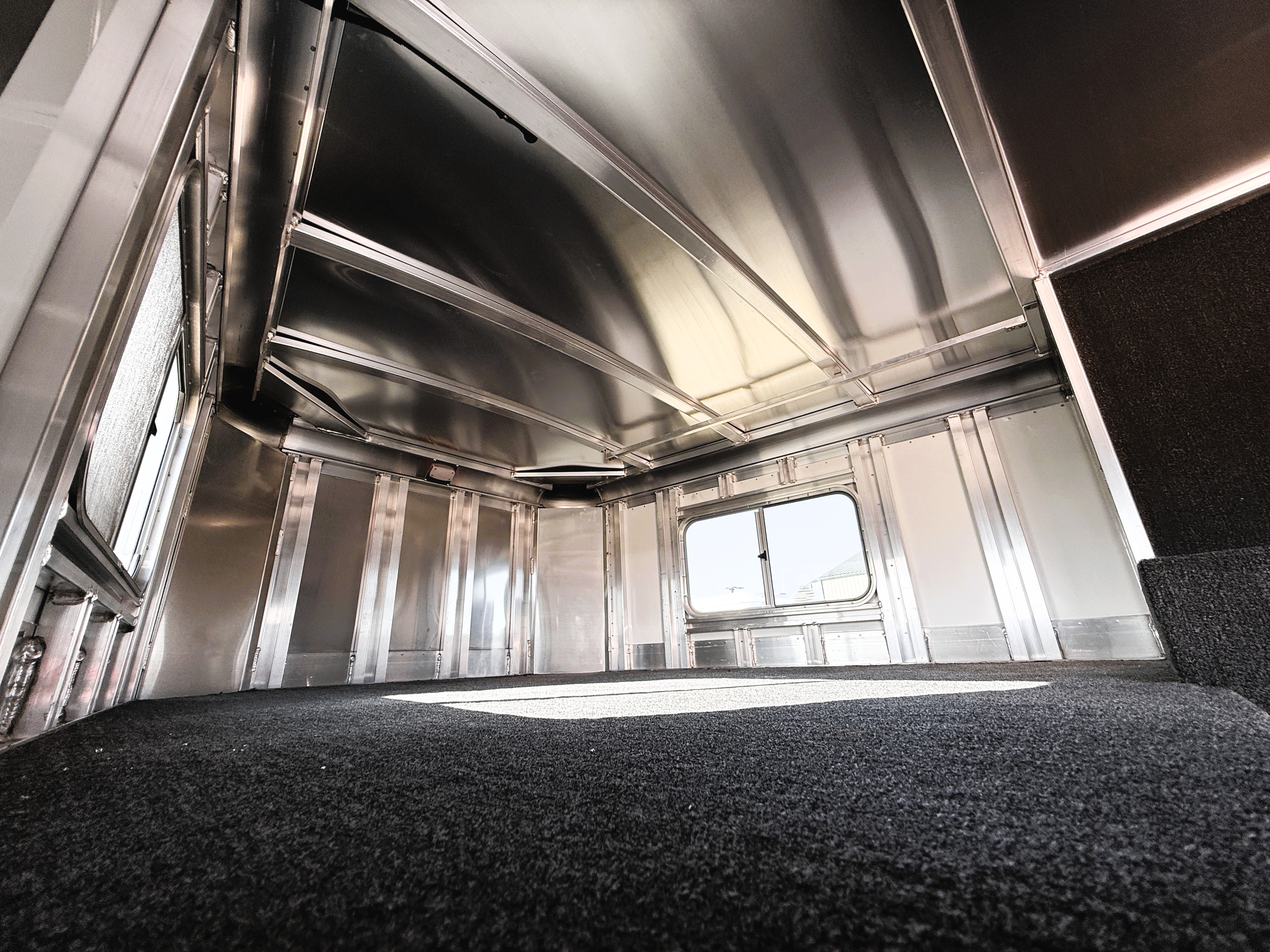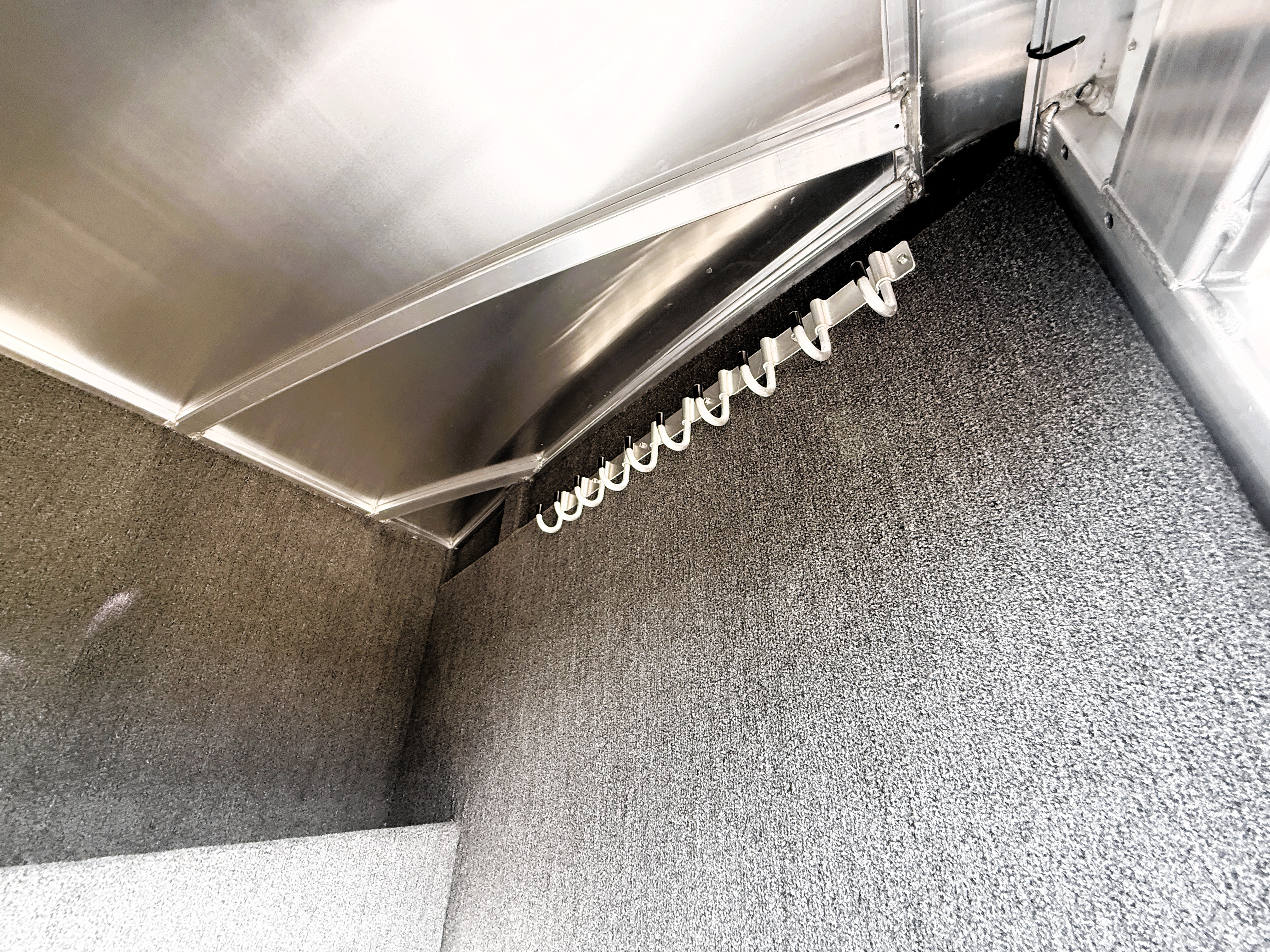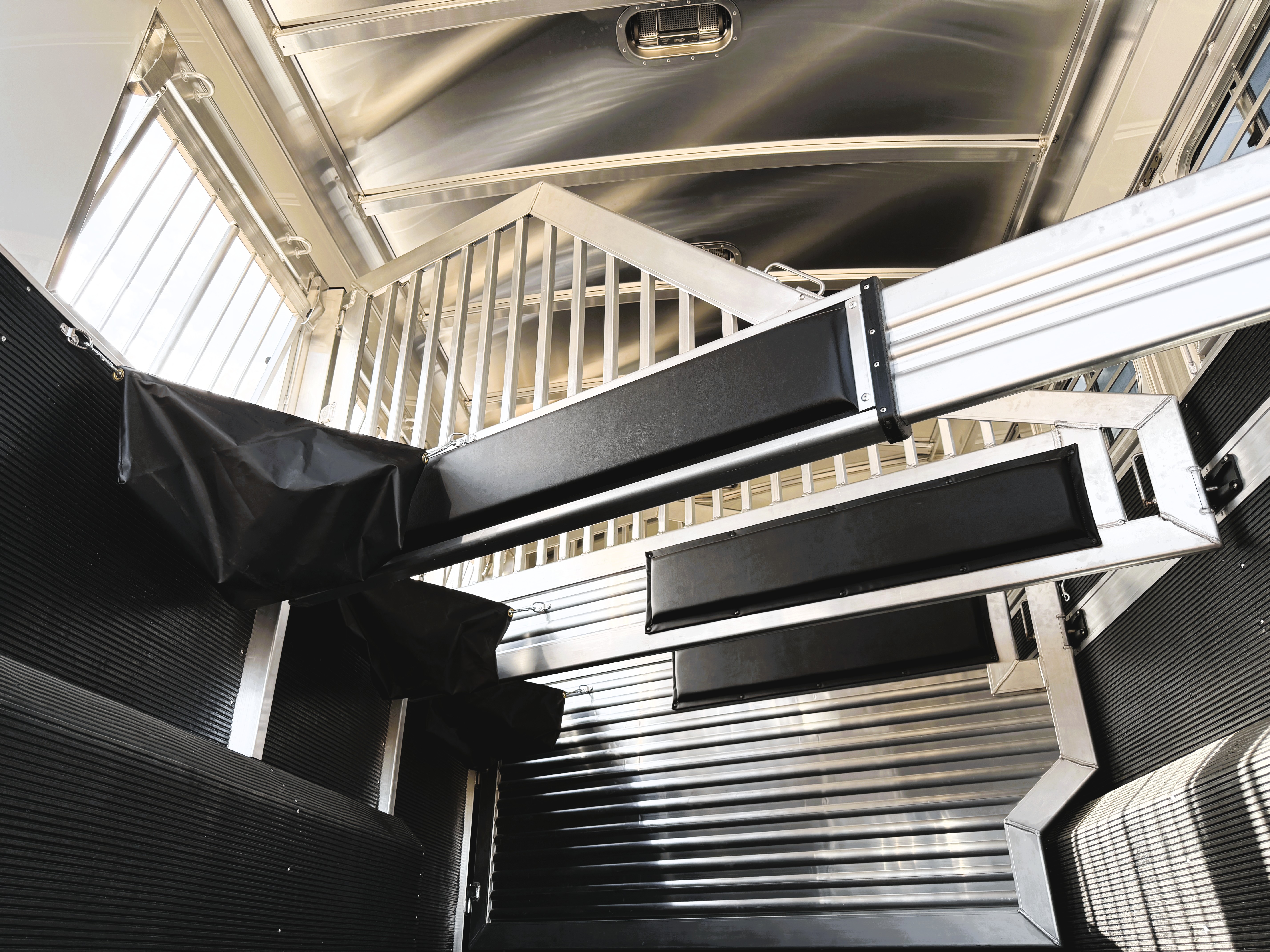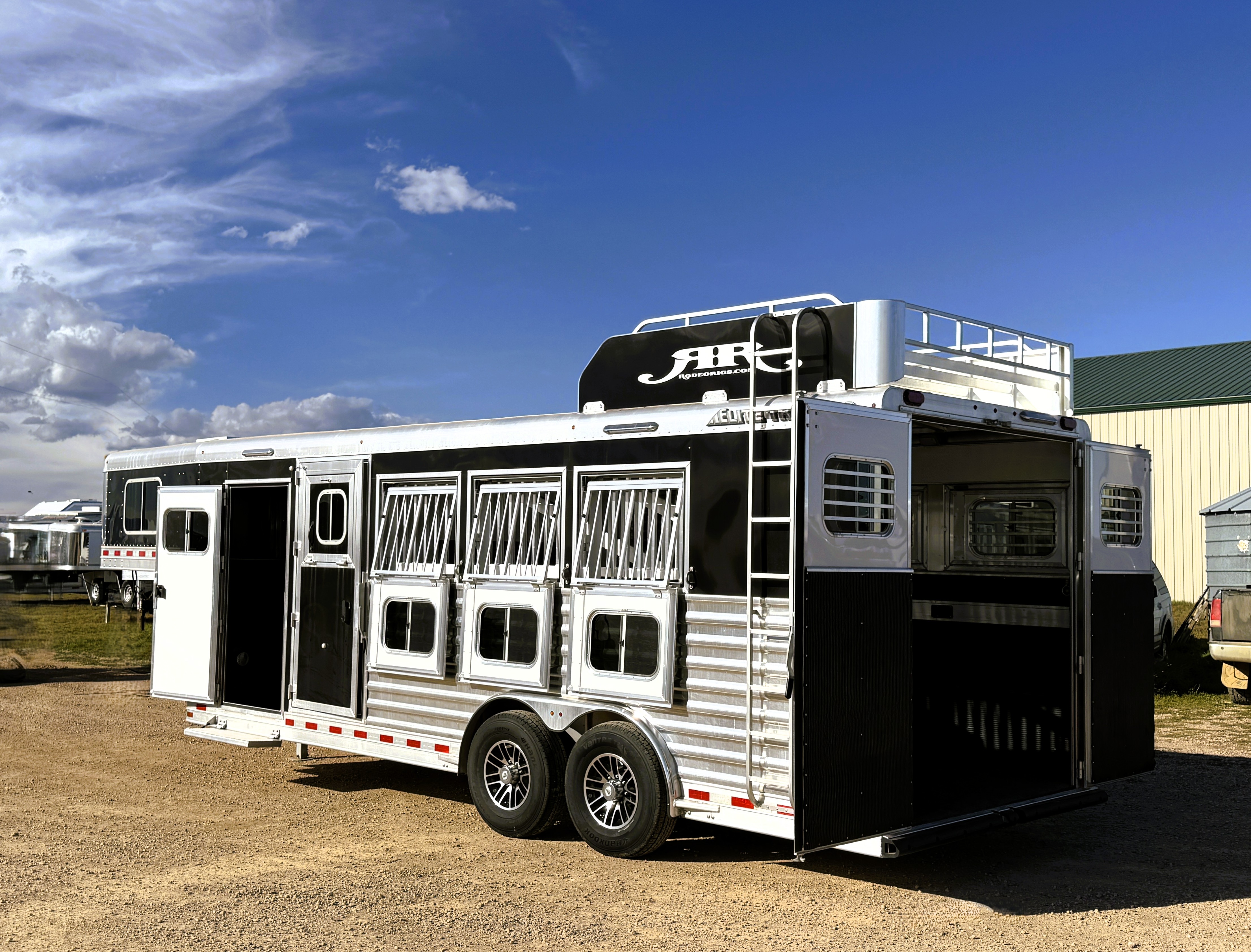 This Elite 4 horse trailer with a side tack has all the options. The horse area includes a stud stall in the front slant and a telescoping divider in the rear slant, a roadside escape door, drop down windows, butterfly rear doors and polylast flooring. The curbside, side tack has double doors for easy access to the 3 2-tier saddle racks, bridle hooks, blanket bar, boot hook and brush trays. The roadside dressing area features more storage availability along with a boot box, shelf, and a clothes rod. Additional trailer features include a hydraulic jack, hay rack with ladder, LED load lights on the rear of the trailer, an LED light above the side tack and the dressing room tack door. This trailer is 22' in length and is 8' wide.