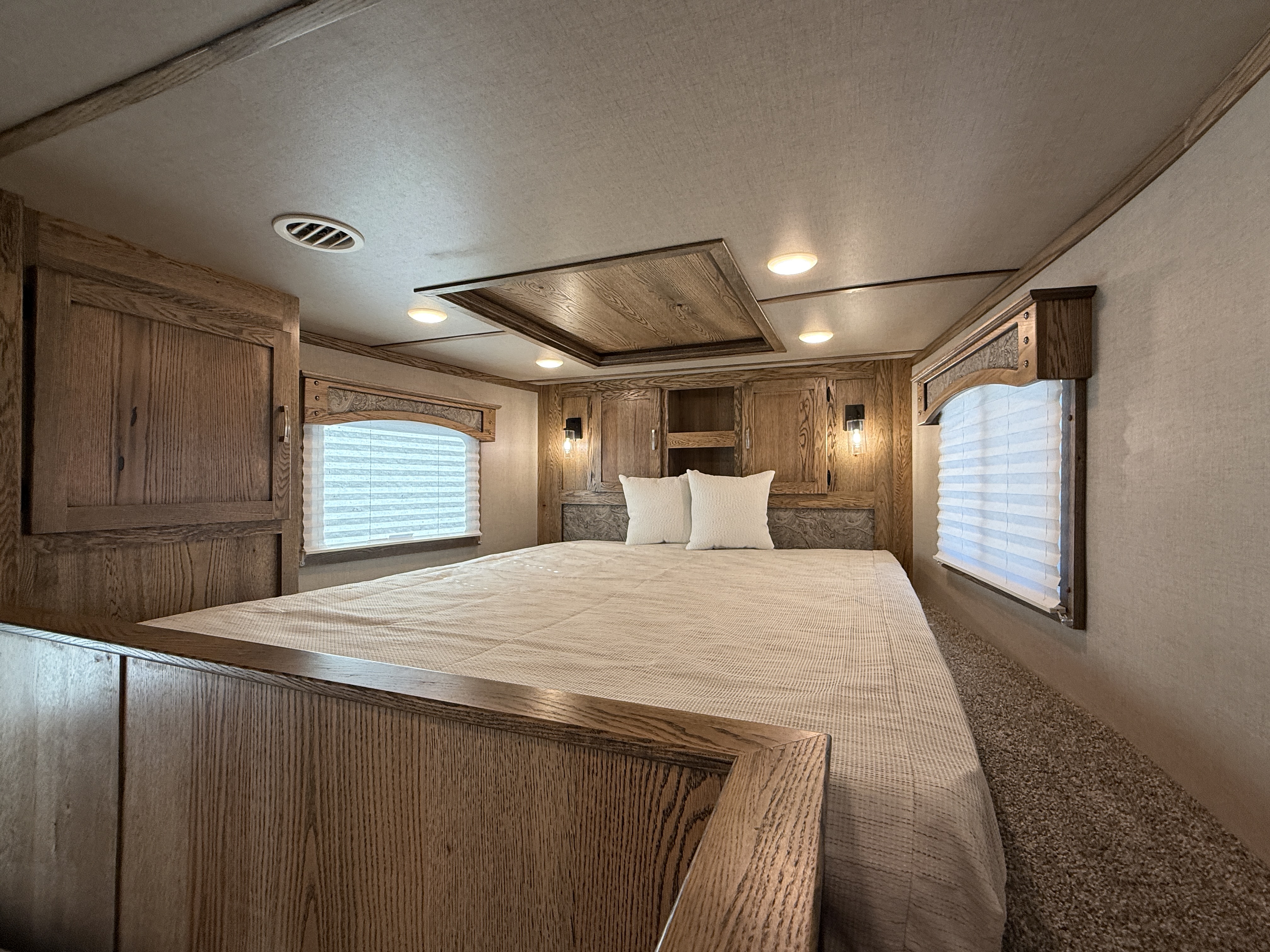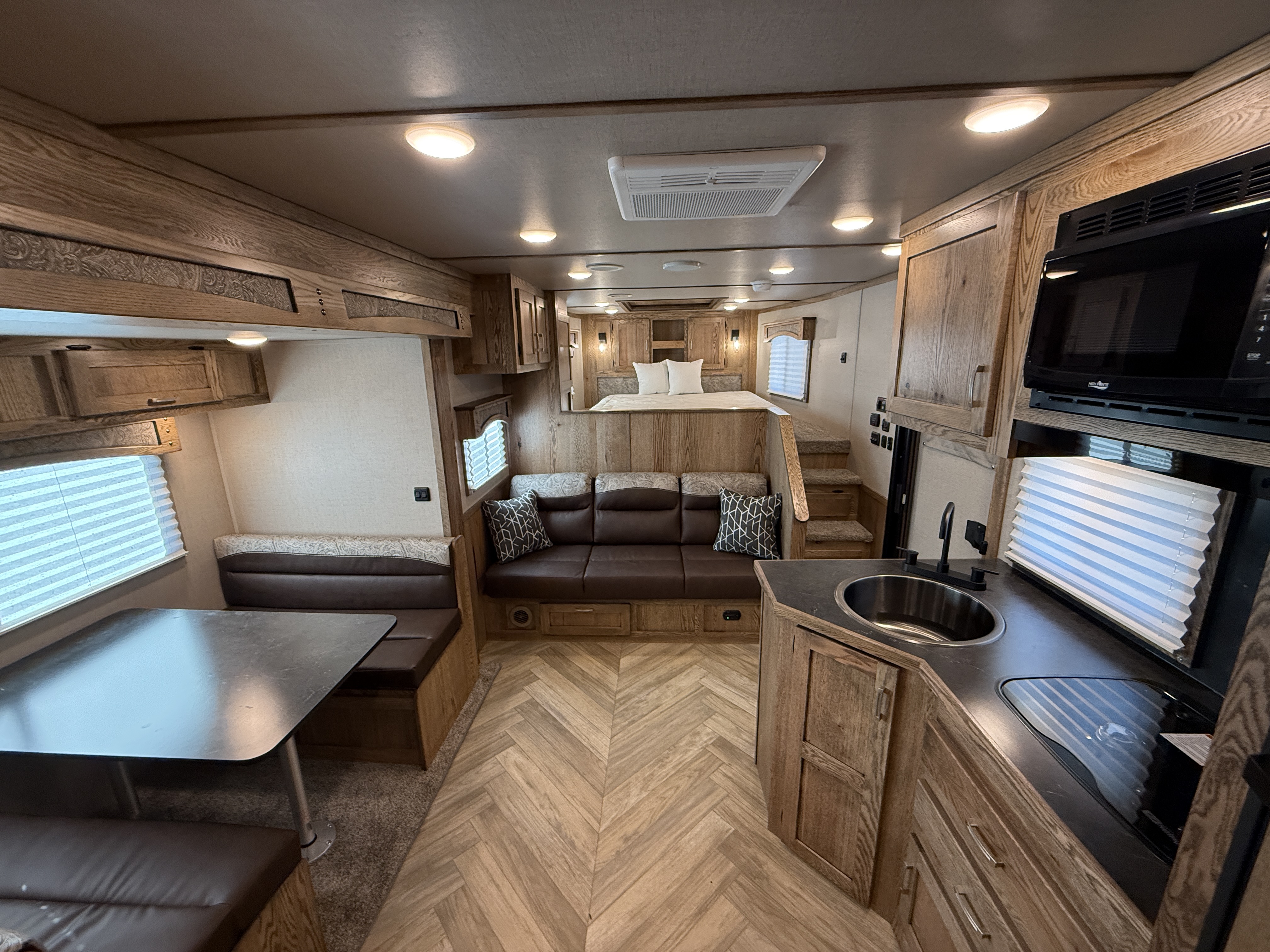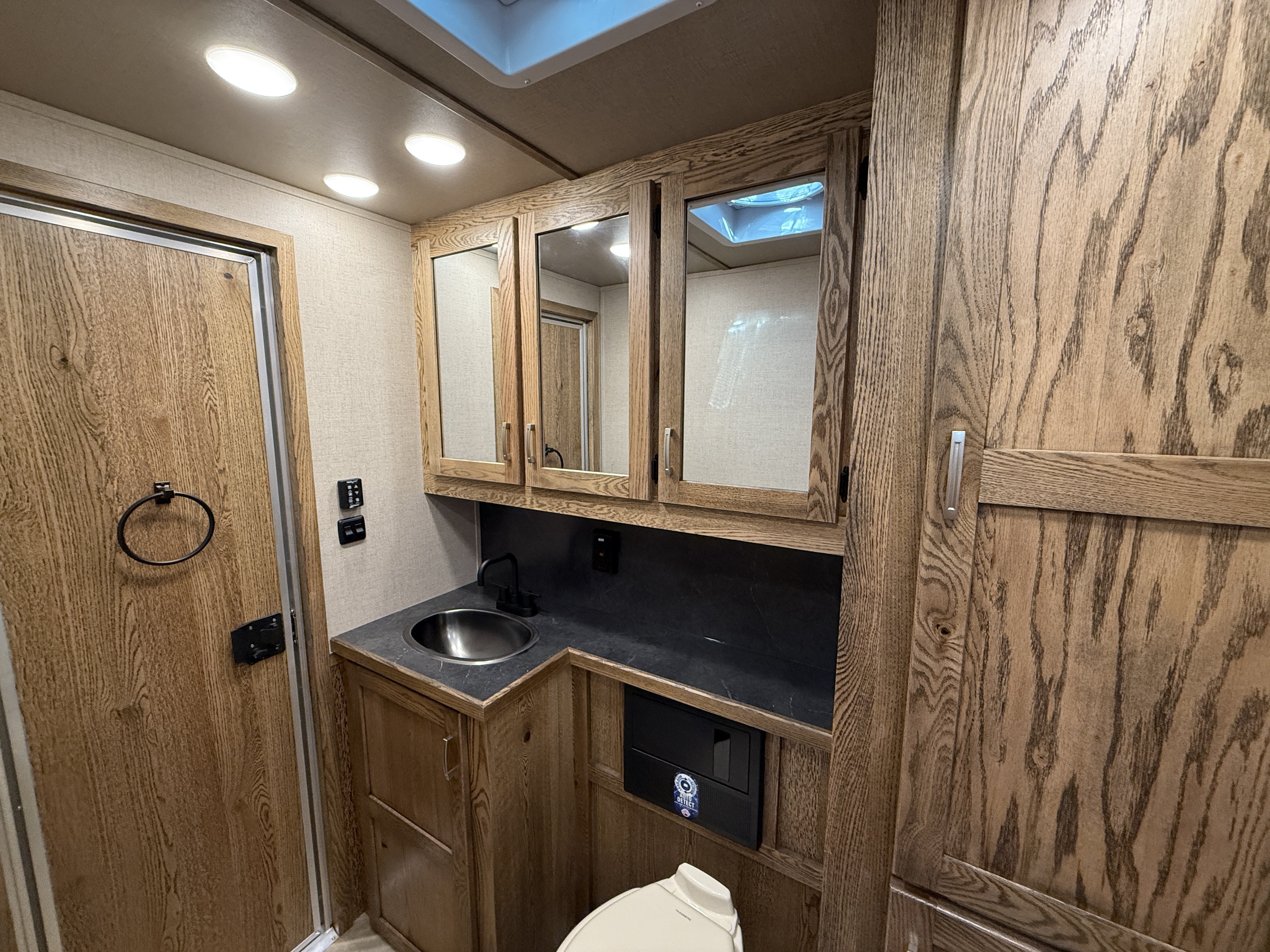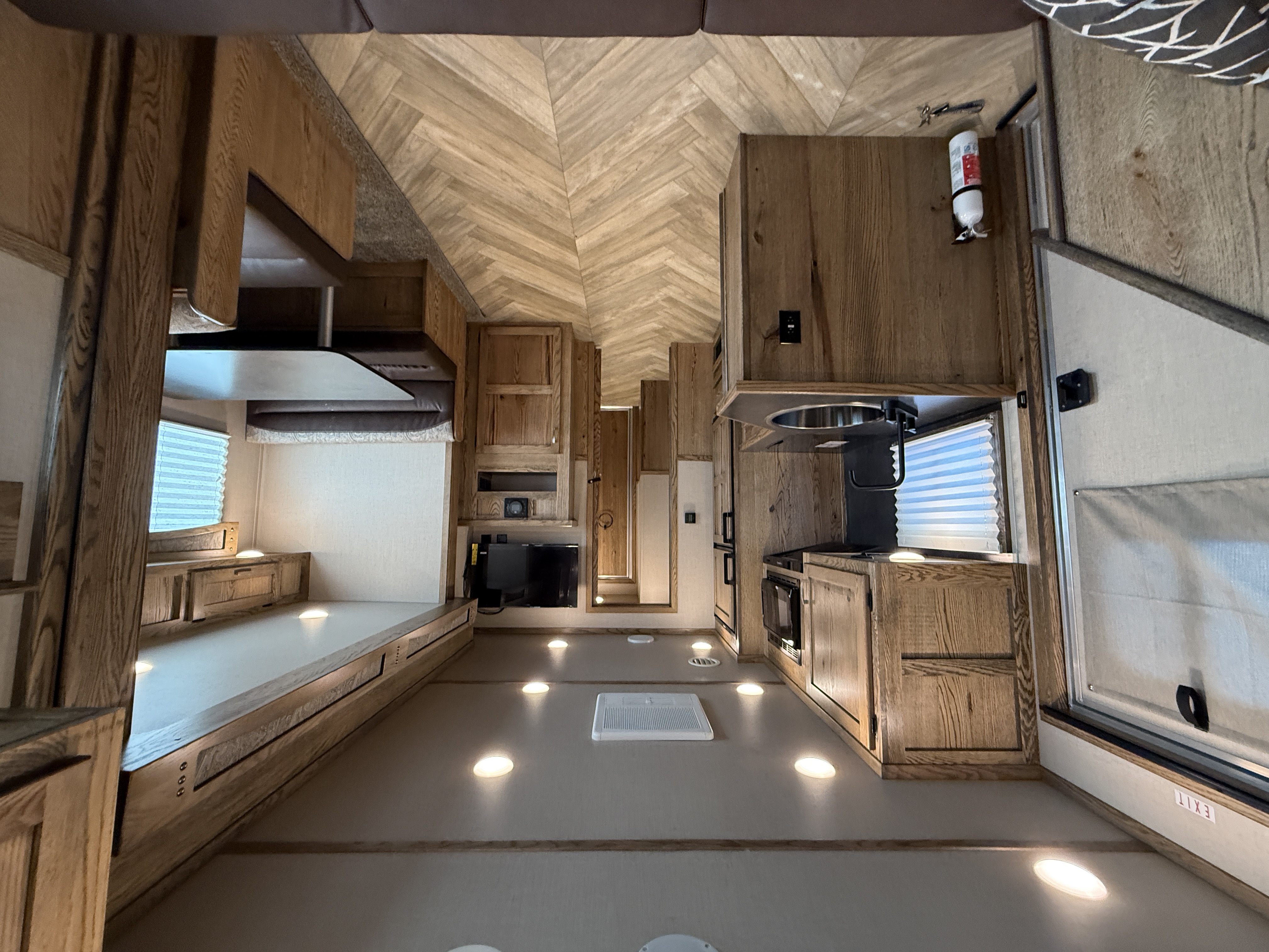 2 Tacks! This 2026 Lakota Livestock Edition has both a single door side-tack with an adjustable 4-tier saddle rack, blanket bar and bridle hooks and a collapsable rear tack with another adjustable 4-tier saddle rack, brush box and more bridle hooks, that's a lot of storage for your gear. The 13' living quarters features a sofa-sleeper in the 6' slide out. There is a sofa-sleeper on the riser wall; a full kitchen that has a sink, recessed cook top, large refrigerator and microwave. The large bathroom has a large shower, 3 door, large medicine cabinet with lights and mirrors, closet and a walk-through door into the stock area. The 18' stock area has a floating center gate. Additional features include a hay pod, dual hydraulic jack, and an awning. This trailer is pre-wired for a generator.
